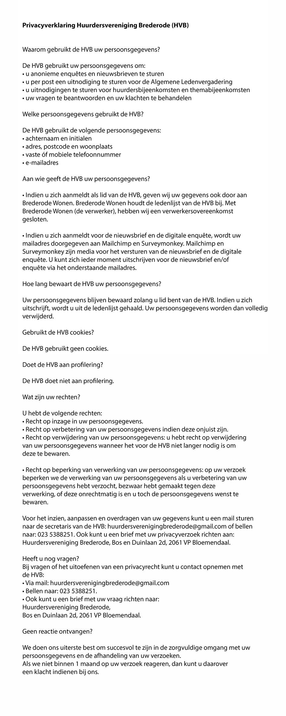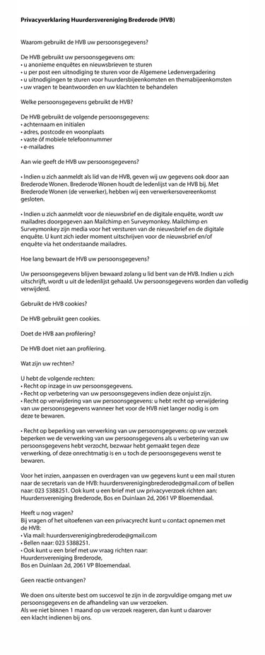 Voor wie alles wil weten hebben we deze pagina met 'papierwerk' gemaakt. Hier kunt u teruglezen welke afspraken HVB bijvoorbeeld heeft gemaakt met de woningcorporatie. Als u nog andere informatie zoekt, kunt u ons altijd benaderen.